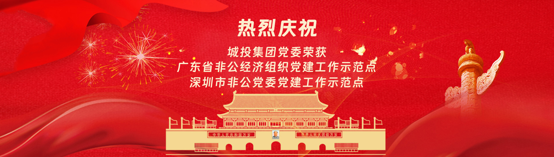 在上級黨委的正確領導下,在城投集團的大力支持下,集團黨委緊緊圍繞企業發展戰略,將黨建引領核心貫穿始終,以五心工程(即思政建設核心工程、經營發展中心工程、企業文化向心工程、黨建品牌匠心工程、服務基層愛心工程)為抓手,大膽探索,勇于突破和創新,不斷形成城投黨建特色,有效輸出城投實踐經驗,充分發揮紅色引擎作用,先后獲得深圳市非公黨委黨建工作示范點深圳市兩新組織黨建工作示范點深圳市文明單位深圳市先進基層黨組織廣東省非公有制經濟領域黨建工作示范點等榮譽稱號。